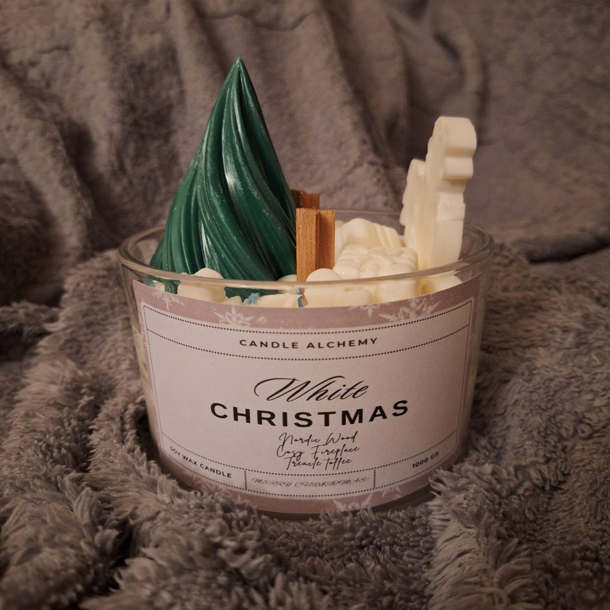 White Christmas Soy Candle - Nordic Wood & Cosy Fireplace Scent